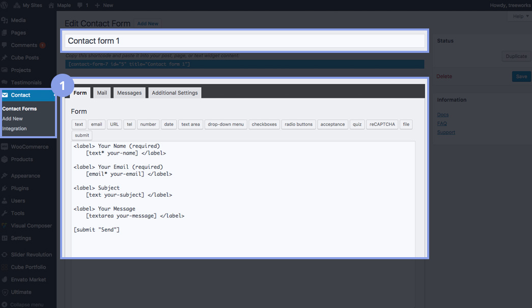 For setting up new contact pages, we use Contact form 7 plugin. This is an awesome way of setting up contact forms in a simple way and for a few clicks.