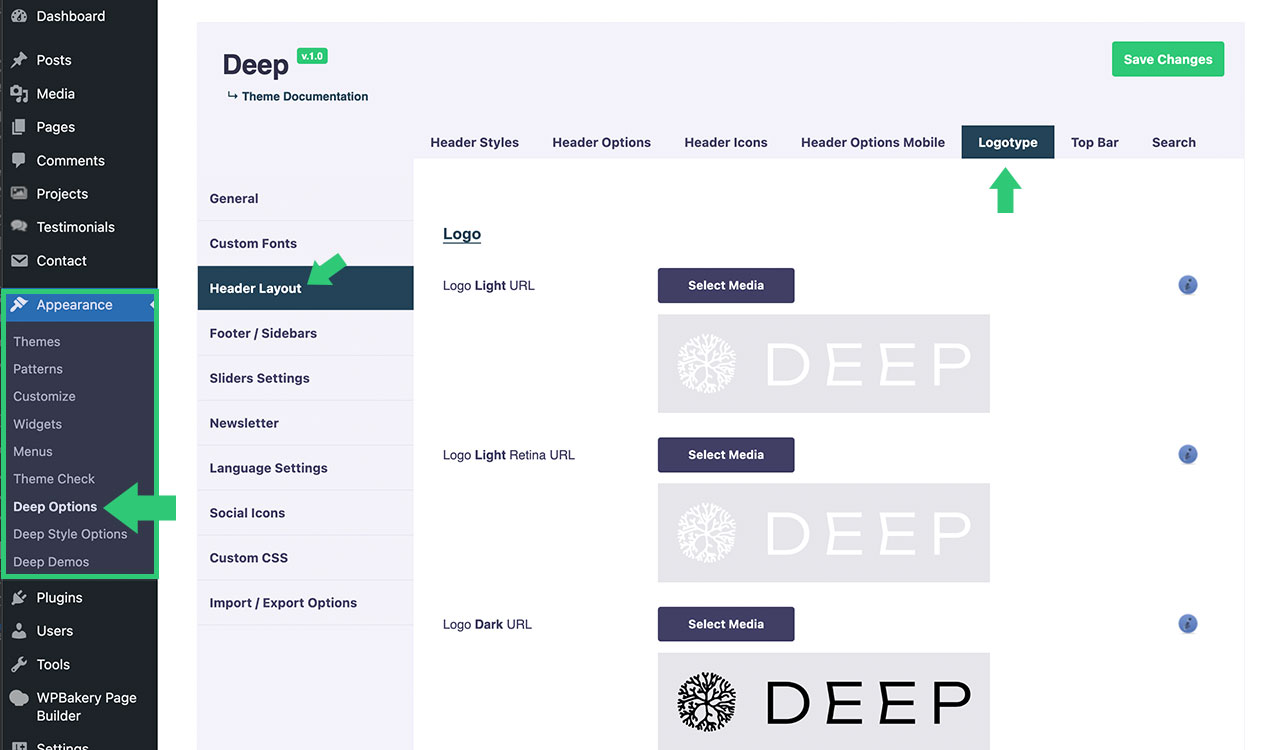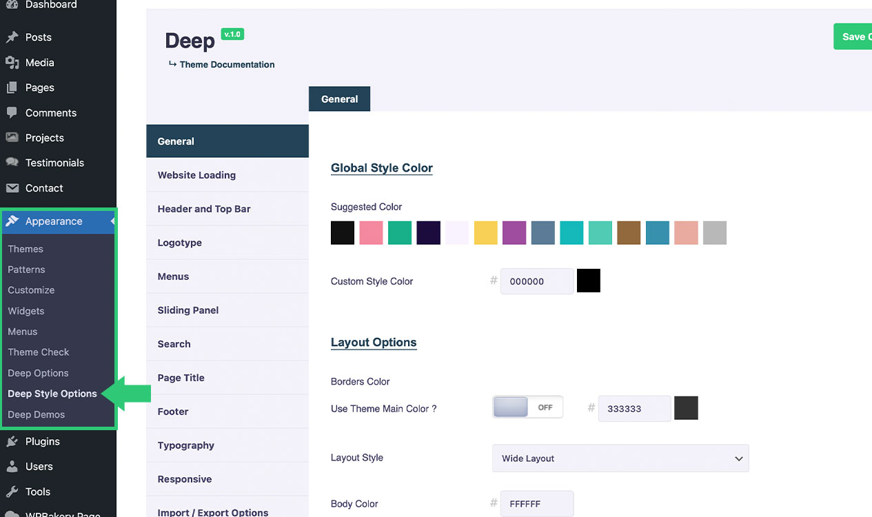 Deep Options panel is meant for the empowering of your theme with some visual enhancements described below.