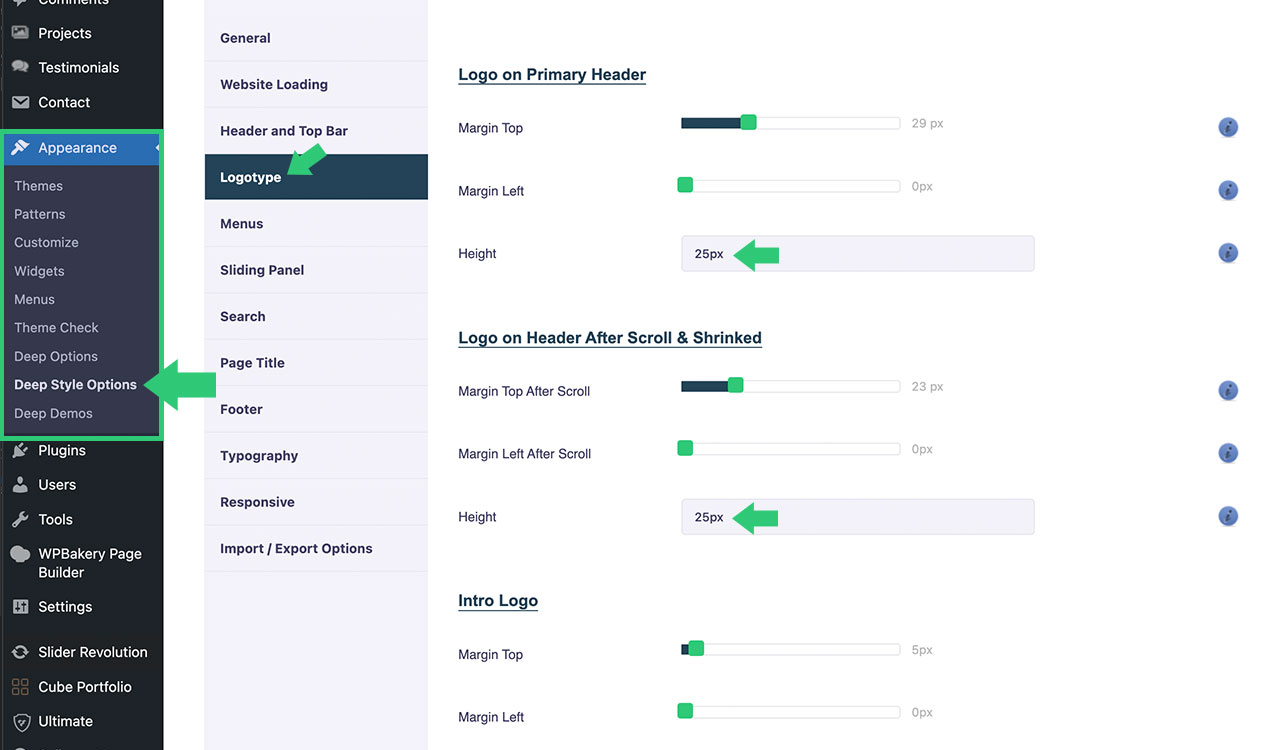 Go to menu Appearance -> Deep Style Options -> Logotype -> Height