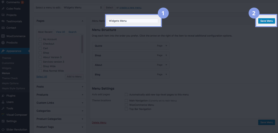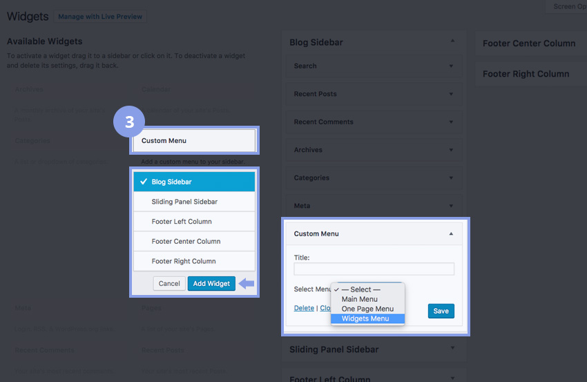 - 1. and 2. Drag-and-drop widgets you'd like to use into "Your Sidebar" widget area, here's an example: